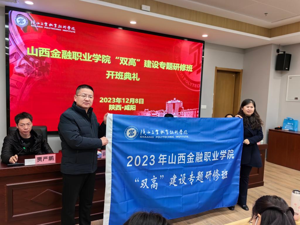 12月8日,山西金融职业学院“双高”建设专题研修班在我校经开校区启新楼举行。学院党委副书记田昊,继续教育与培训学院院长闫军,山西金融职业学院党委委员、副院长富伯亭,教务部部长牛文峰,人事部部长龙婷婷,以及培训班相关管理人员和40名学员参加。开班典礼由继续教育与培训学院副院长贾严鹏主持。