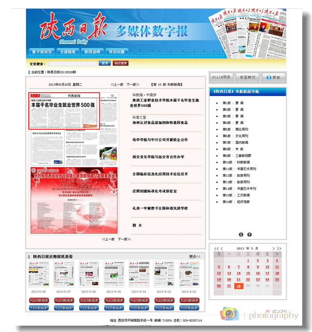 5月28日,《陕西日报》在科教星空(中国)版头条聚焦我院“2013届千名学生就业世界五百强”。