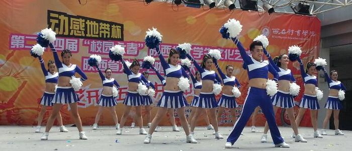 6月3日下午,由共青团陕西省委员会、陕西省教育厅、陕西省学联联合主办的“动感地带”杯第二十四届“校园之春”陕西省大中学生文化艺术节大学生啦啦操大赛在西安体育学院大学生活动中心举行。